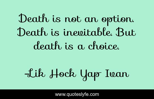 This page presents the quote "Death is not an option. Death is inevitable. But death is a choice.". Author of this quote is Lik Hock Yap Ivan. This quote is about life, death, wise, option, decision, choice, inspiration,.