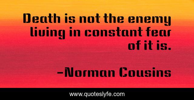 This page presents the quote "Death is not the enemy living in constant fear of it is.". Author of this quote is Norman Cousins. This quote is about future, anxiety,.