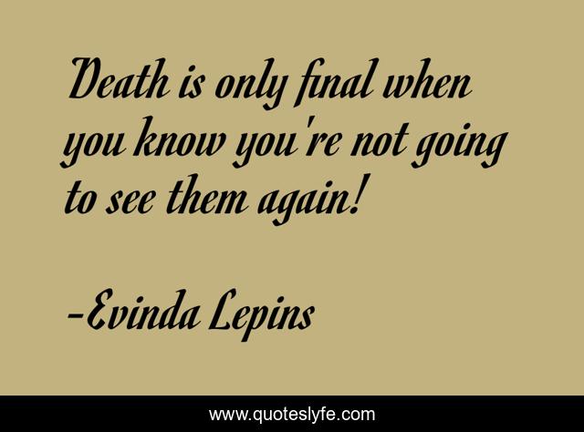 This page presents the quote "Death is only final when you know you're not going to see them again!". Author of this quote is Evinda Lepins. This quote is about loss, life, heaven, love, quotes, death, salvation, affection,.