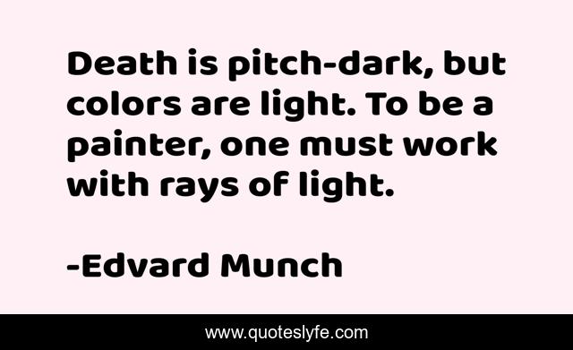 This page presents the quote "Death is pitch-dark, but colors are light. To be a painter, one must work with rays of light.". Author of this quote is Edvard Munch. This quote is about light, colors, work,.