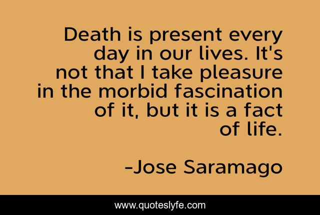 This page presents the quote "Death is present every day in our lives. It's not that I take pleasure in the morbid fascination of it, but it is a fact of life.". Author of this quote is Jose Saramago. This quote is about life, day, every day,.