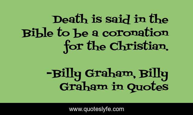This page presents the quote "Death is said in the Bible to be a coronation for the Christian.". Author of this quote is Billy Graham, Billy Graham in Quotes. This quote is about death, billy-graham,.