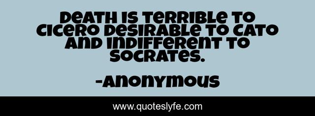 This page presents the quote "Death is terrible to Cicero desirable to Cato and indifferent to Socrates.". Author of this quote is Anonymous. This quote is about death, dying,.