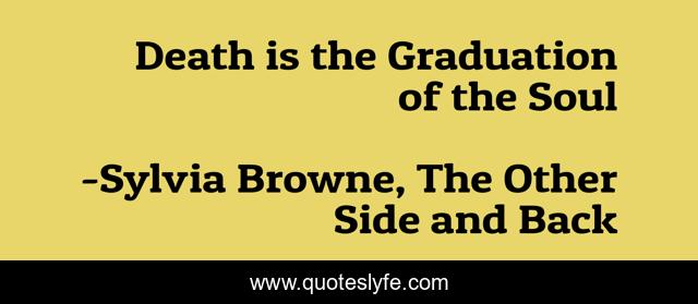 This page presents the quote "Death is the Graduation of the Soul". Author of this quote is Sylvia Browne, The Other Side and Back. This quote is about spiritual, death,.