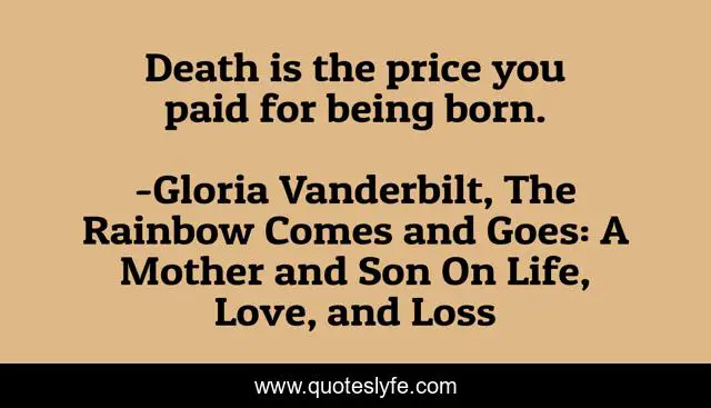 "Gloria Vanderbilt, The Rainbow Comes and Goes: A Mother and Son On Life, Love, and Loss Quotes." Quoteslyfe.com, 2025. Sat. 06 Dec. 2025. <https://www.quoteslyfe.com/quote/Death-is-the-price-you-paid-for-115701>.