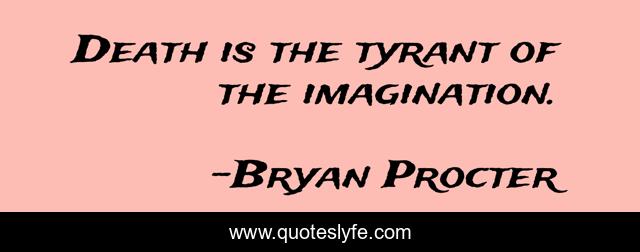 This page presents the quote "Death is the tyrant of the imagination.". Author of this quote is Bryan Procter. This quote is about imagination, tyrant,.