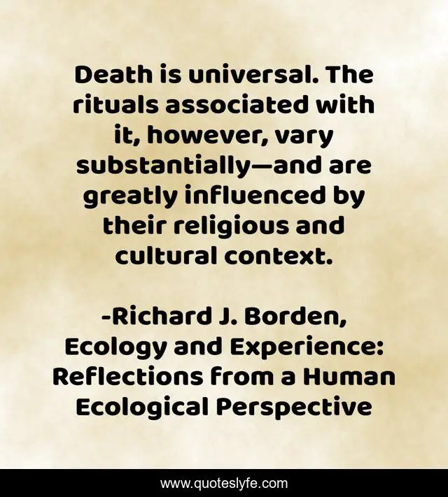 "Richard J. Borden, Ecology and Experience: Reflections from a Human Ecological Perspective Quotes." Quoteslyfe.com, 2025. Fri. 05 Dec. 2025. <https://www.quoteslyfe.com/quote/Death-is-universal-The-rituals-associated-with-161140>.