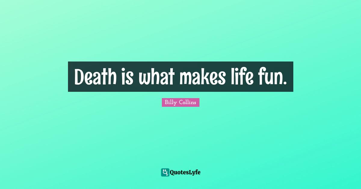 This page presents the quote "Death is what makes life fun.". Author of this quote is Billy Collins. This quote is about death, fun, life, fun life,.