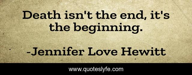 This page presents the quote "Death isn't the end, it's the beginning.". Author of this quote is Jennifer Love Hewitt. This quote is about death, love, philosophy, jennifer, end, beginning, affection, hewitt,.