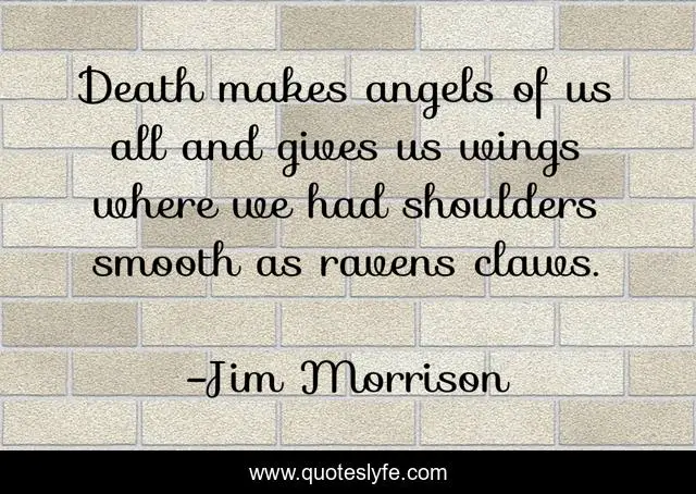 "Jim Morrison Quotes." Quoteslyfe.com, 2025. Sun. 07 Dec. 2025. <https://www.quoteslyfe.com/quote/Death-makes-angels-of-us-all-and-294798>.