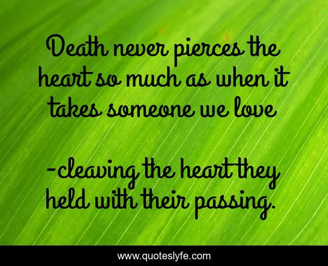 "cleaving the heart they held with their passing. Quotes." Quoteslyfe.com, 2025. Sat. 06 Dec. 2025. <https://www.quoteslyfe.com/quote/Death-never-pierces-the-heart-so-much-123073>.