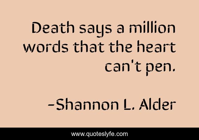 "Shannon L. Alder Quotes." Quoteslyfe.com, 2025. Sat. 06 Dec. 2025. <https://www.quoteslyfe.com/quote/Death-says-a-million-words-that-the-203825>.