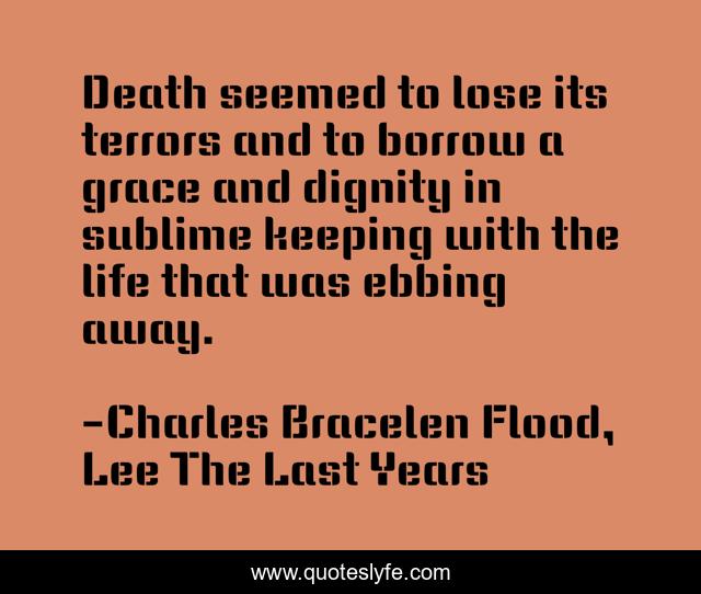 This page presents the quote "Death seemed to lose its terrors and to borrow a grace and dignity in sublime keeping with the life that was ebbing away.". Author of this quote is Charles Bracelen Flood, Lee The Last Years. This quote is about grief, dignity, death, hope,.