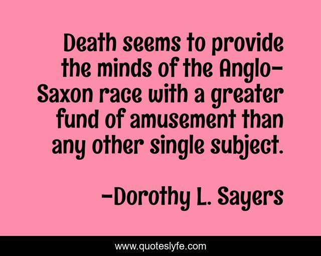 This page presents the quote "Death seems to provide the minds of the Anglo-Saxon race with a greater fund of amusement than any other single subject.". Author of this quote is Dorothy L. Sayers. This quote is about single, race, minds,.
