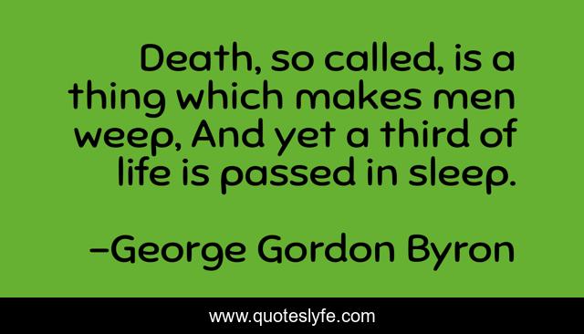 This page presents the quote "Death, so called, is a thing which makes men weep, And yet a third of life is passed in sleep.". Author of this quote is George Gordon Byron. This quote is about death, sleep,.