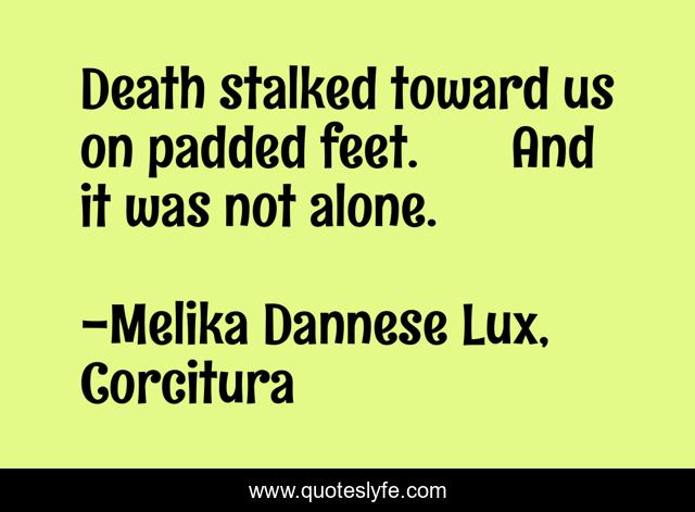 "Melika Dannese Lux, Corcitura Quotes." Quoteslyfe.com, 2025. Sat. 06 Dec. 2025. <https://www.quoteslyfe.com/quote/Death-stalked-toward-us-on-padded-feet-21780>.