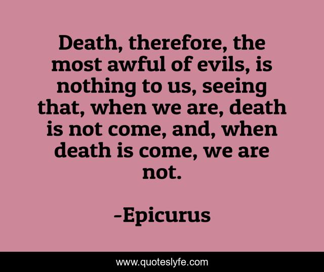 This page presents the quote "Death, therefore, the most awful of evils, is nothing to us, seeing that, when we are, death is not come, and, when death is come, we are not.". Author of this quote is Epicurus. This quote is about death, peace, wisdom, serenity, inspirational, awful, enthusiasm, philosophy,.