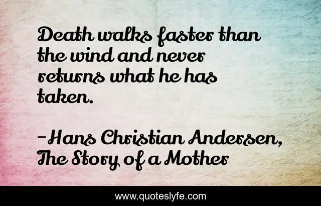 "Hans Christian Andersen, The Story of a Mother Quotes." Quoteslyfe.com, 2025. Mon. 08 Dec. 2025. <https://www.quoteslyfe.com/quote/Death-walks-faster-than-the-wind-and-20812>.