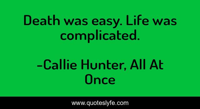"Callie Hunter, All At Once Quotes." Quoteslyfe.com, 2025. Sun. 07 Dec. 2025. <https://www.quoteslyfe.com/quote/Death-was-easy-Life-was-complicated-105815>.