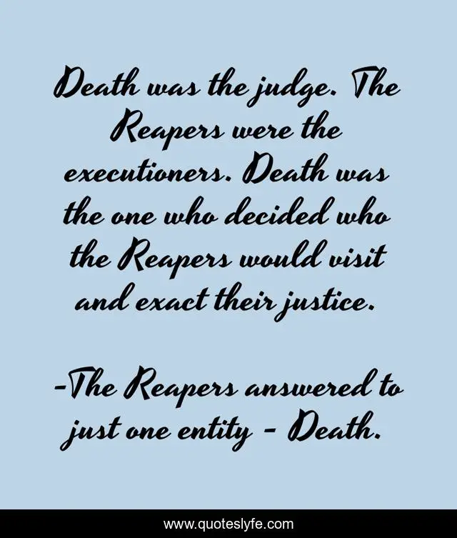 "The Reapers answered to just one entity - Death. Quotes." Quoteslyfe.com, 2025. Sun. 07 Dec. 2025. <https://www.quoteslyfe.com/quote/Death-was-the-judge-The-Reapers-were-131977>.