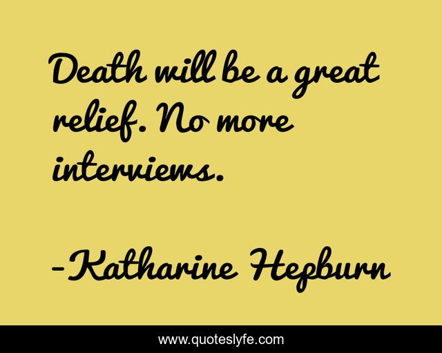 This page presents the quote "Death will be a great relief. No more interviews.". Author of this quote is Katharine Hepburn. This quote is about death, humor,.