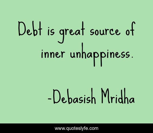 This page presents the quote "Debt is great source of inner unhappiness.". Author of this quote is Debasish Mridha. This quote is about philosophy, debasish-mridha, inner-unhappiness, quotes, debasish-mridha-md, inspirational, enthusiasm, debt, source-of-unhappiness,.