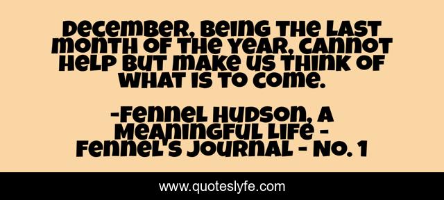"Fennel Hudson, A Meaningful Life - Fennel's Journal - No. 1 Quotes." Quoteslyfe.com, 2025. Fri. 05 Dec. 2025. <https://www.quoteslyfe.com/quote/December-being-the-last-month-of-the-242642>.