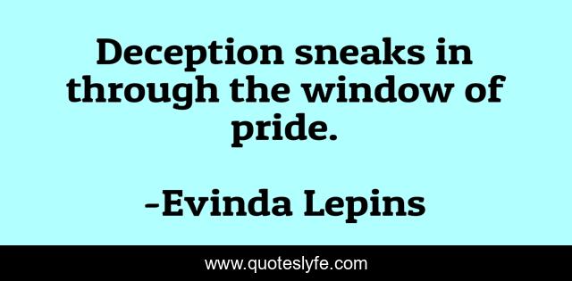 This page presents the quote "Deception sneaks in through the window of pride.". Author of this quote is Evinda Lepins. This quote is about life, pride, deception, window,.
