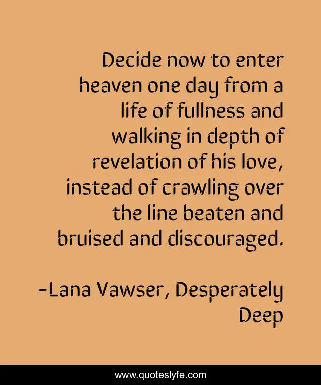 "Lana Vawser, Desperately Deep Quotes." Quoteslyfe.com, 2025. Sat. 06 Dec. 2025. <https://www.quoteslyfe.com/quote/Decide-now-to-enter-heaven-one-day-120241>.