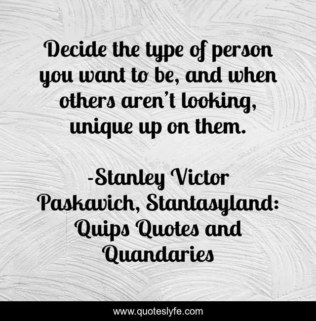 "Stanley Victor Paskavich, Stantasyland: Quips Quotes and Quandaries Quotes." Quoteslyfe.com, 2025. Sat. 06 Dec. 2025. <https://www.quoteslyfe.com/quote/Decide-the-type-of-person-you-want-181573>.