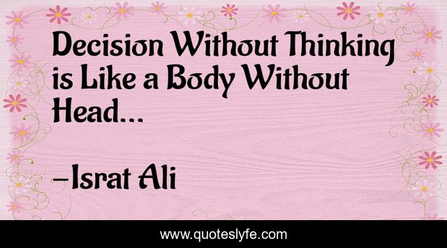This page presents the quote "Decision Without Thinking is Like a Body Without Head...". Author of this quote is Israt Ali. This quote is about thinking, decision-making,.