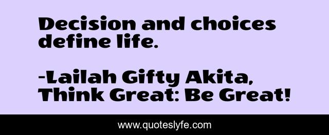 "Lailah Gifty Akita, Think Great: Be Great! Quotes." Quoteslyfe.com, 2025. Sat. 06 Dec. 2025. <https://www.quoteslyfe.com/quote/Decision-and-choices-define-life-95124>.