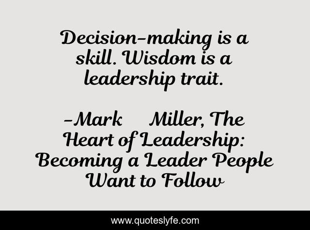 This page presents the quote "Decision-making is a skill. Wisdom is a leadership trait.". Author of this quote is Mark Miller, The Heart of Leadership: Becoming a Leader People Want to Follow. This quote is about leadership, decisions, leaders, wisdom,.