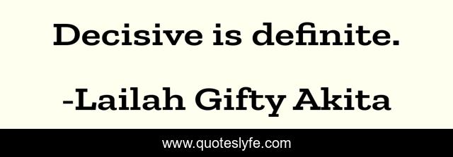 "Lailah Gifty Akita Quotes." Quoteslyfe.com, 2025. Mon. 08 Dec. 2025. <https://www.quoteslyfe.com/quote/Decisive-is-definite-174740>.