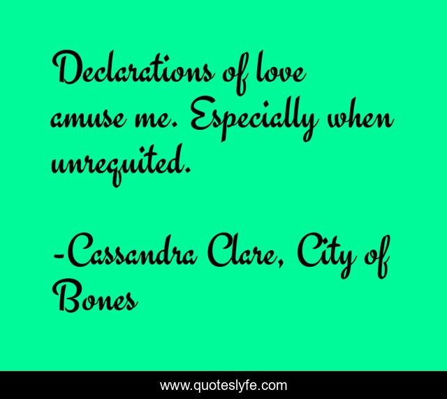 This page presents the quote "Declarations of love amuse me. Especially when unrequited.". Author of this quote is Cassandra Clare, City of Bones. This quote is about clary-fray, love, jace-wayland, affection,.