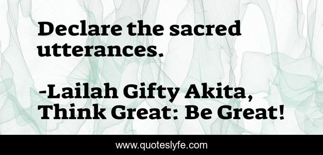 "Lailah Gifty Akita, Think Great: Be Great! Quotes." Quoteslyfe.com, 2025. Fri. 05 Dec. 2025. <https://www.quoteslyfe.com/quote/Declare-the-sacred-utterances-95059>.