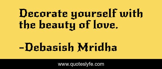 "Debasish Mridha Quotes." Quoteslyfe.com, 2025. Sun. 07 Dec. 2025. <https://www.quoteslyfe.com/quote/Decorate-yourself-with-the-beauty-of-love-206445>.