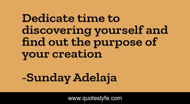 This page presents the quote "Dedicate time to discovering yourself and find out the purpose of your creation". Author of this quote is Sunday Adelaja. This quote is about life, blessing, finance, money, work, job, joblessness, purpose, self-discovery,.
