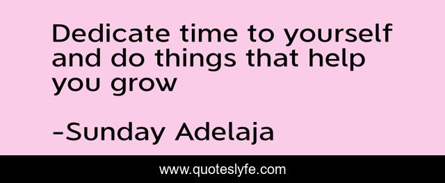 This page presents the quote "Dedicate time to yourself and do things that help you grow". Author of this quote is Sunday Adelaja. This quote is about life, blessing, finance, jobless, money, work, job, growth, joblessness,.