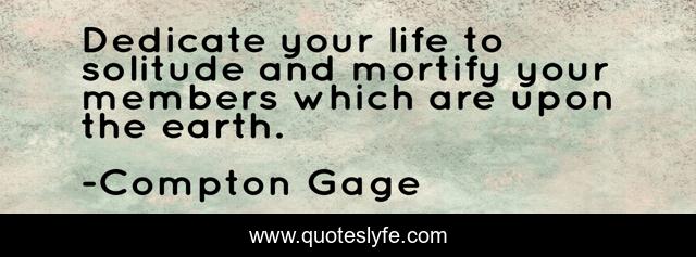 "Compton Gage Quotes." Quoteslyfe.com, 2025. Fri. 05 Dec. 2025. <https://www.quoteslyfe.com/quote/Dedicate-your-life-to-solitude-and-mortify-20426>.
