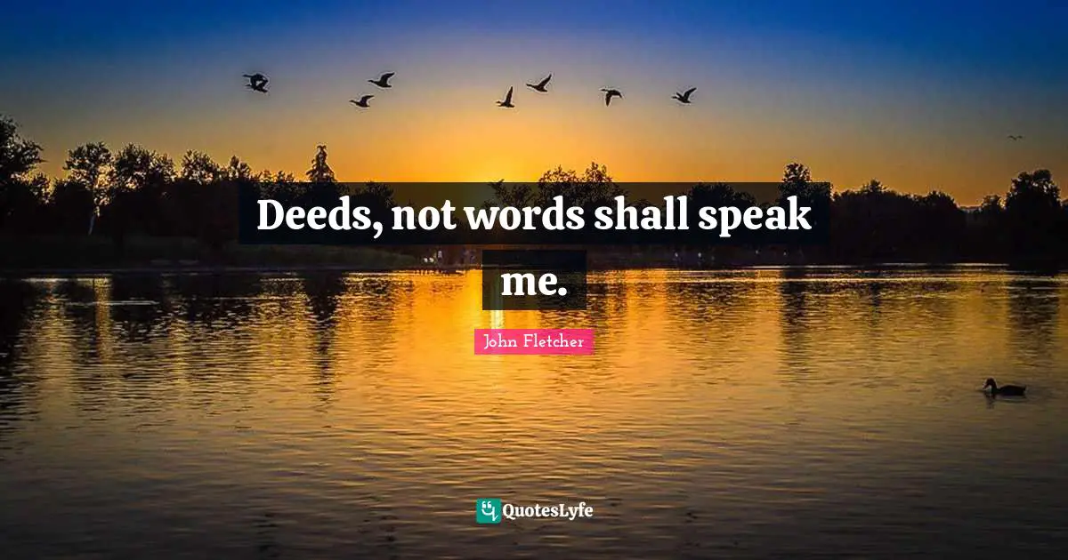 "John Fletcher Quotes." Quoteslyfe.com, 2025. Mon. 29 Dec. 2025. <https://www.quoteslyfe.com/quote/Deeds-not-words-shall-speak-me-736600>.