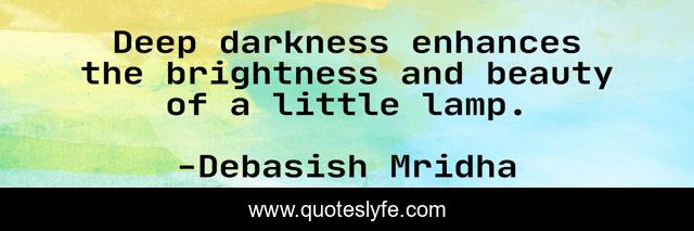 This page presents the quote "Deep darkness enhances the brightness and beauty of a little lamp.". Author of this quote is Debasish Mridha. This quote is about philosophy, beauty, mridha, debasish, debasish-mridha, inspirational, enthusiasm, hope,.