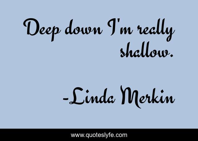 "Linda Merkin Quotes." Quoteslyfe.com, 2025. Sat. 06 Dec. 2025. <https://www.quoteslyfe.com/quote/Deep-down-I-m-really-shallow-278356>.