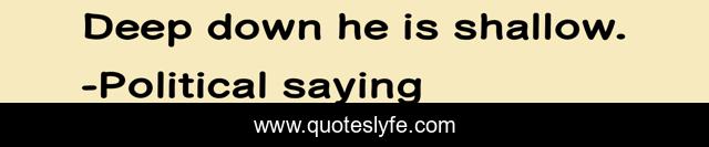This page presents the quote "Deep down he is shallow.". Author of this quote is Political saying. .