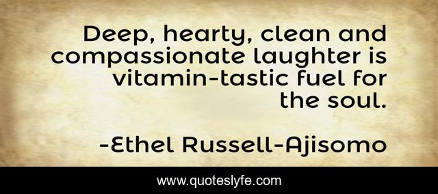 This page presents the quote "Deep, hearty, clean and compassionate laughter is vitamin-tastic fuel for the soul.". Author of this quote is Ethel Russell-Ajisomo. This quote is about healthy, revitalization, laughter, fuel-of-life, soul,.