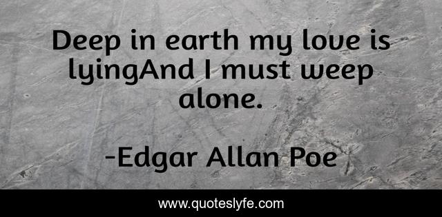 This page presents the quote "Deep in earth my love is lyingAnd I must weep alone.". Author of this quote is Edgar Allan Poe. This quote is about sorrow, bereavement, crying,.