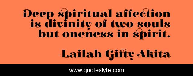 This page presents the quote "Deep spiritual affection is divinity of two souls but oneness in spirit.". Author of this quote is Lailah Gifty Akita. This quote is about christianity-faith, divinity, soul-mates, spiritual, love, spirit, affection,.