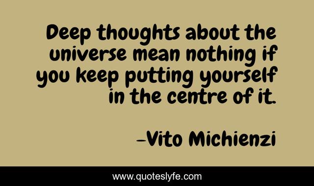 This page presents the quote "Deep thoughts about the universe mean nothing if you keep putting yourself in the centre of it.". Author of this quote is Vito Michienzi. .