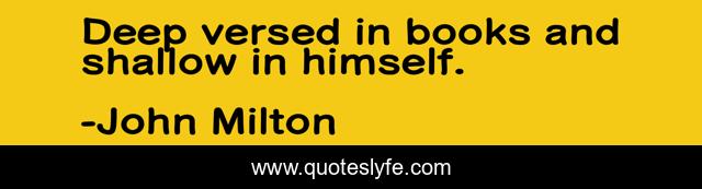 This page presents the quote "Deep versed in books and shallow in himself.". Author of this quote is John Milton. .