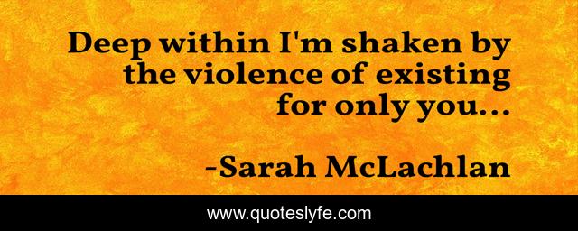 This page presents the quote "Deep within I'm shaken by the violence of existing for only you...". Author of this quote is Sarah McLachlan. This quote is about emotion, relationships, breakups, musicians, music, singer-songwriters, obsession, songwriters,.